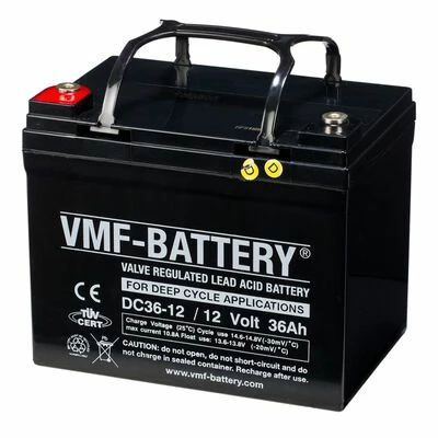 Cette batterie AMG à décharge profonde DC36-12 de VMF est conçue pour être déchargée profondément et rechargée des centaines de fois (500 cycles à 70% de décharge selon la norme IEC 254-1).