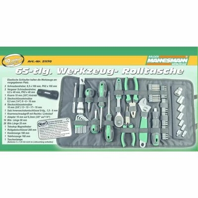 La pochette à outils Brüder Mannesmann contient 65 des outils à main les plus couramment utilisés dans un étui en tissu léger mais durable, ce qui en fait un ensemble indispensable pour les bricoleurs et les mécaniciens amateurs.