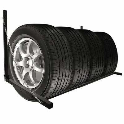 Fabriqué en acier robuste et durable enduit de poudre, ce porte-pneus facile à installer peut supporter jusqu’à 90 kg. Il est réglable en largeur entre 90 et 130 cm (avec une longueur utile de 122 cm).