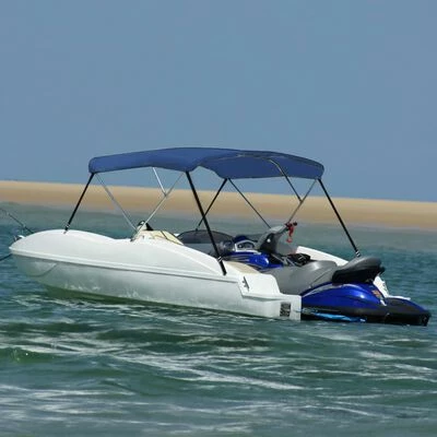 Remarque importante : veuillez utiliser la botte pour protéger le tissu lorsque vous n’utilisez pas le toit bimini et plier l’auvent lorsque la vitesse du navire dépasse 25 m/h.