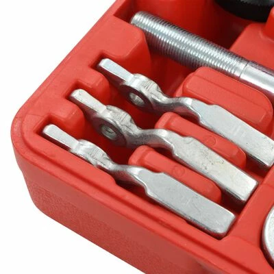 Le kit comprend un marteau à glissière en acier malléable qui vous permet d’extraire rapidement et avec précision dans les espaces restreints. Les mâchoires internes et externes offrent une variété de combinaisons pour extraire les roulements, les engrenages et les joints d’étanchéité. Il comprend également un adaptateur pour clé à molette, une clé à tête croisée à 3 voies, un cône, un crochet pour extracteur, un attachement de crochet pour extracteur, un accessoire pour essieu arrière, un extracteur de moyeu avant et un accessoire pour bosses pour tôle ou autre nécessité.