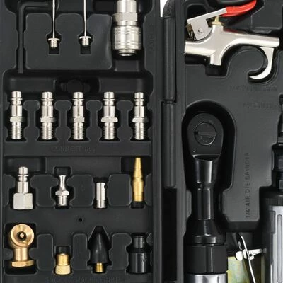 Cet ensemble complet contient une sélection d’outils pneumatiques populaires (une clé à chocs pneumatique 1/2″, une meuleuse à matrices pneumatiques 1/4″, une clé à cliquet pneumatique 3/8″, un marteau pneumatique 150 mm et une soufflette) et des accessoires connexes (tels que des raccords de tuyaux, des ciseaux à marteau, des meules, des socles à chocs, etc) pour l’entrainement, le sablage et le ciselage professionnels, etc. Ce kit d’outils pneumatiques est indispensable pour tous les ateliers, garages et hangars.