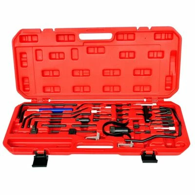 Tous les ensembles sont fournis dans un étui rigide robuste pour le stockage. La livraison comprend la goupille de blocage du volant, le boulon de verrouillage de l’arbre à cames, la goupille de verrouillage de la pompe d’injection, l’outil de maintien du volant, le clip de retenue de courroie de distribution et le tendeur de courroie de distribution.