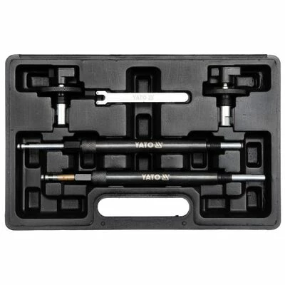 L’outil de verrouillage pour moteur de YATO est conçu pour ajuster l’arbre à cames sur les moteurs à essence et diesel et se compose de 5 pièces en acier carbonisé.