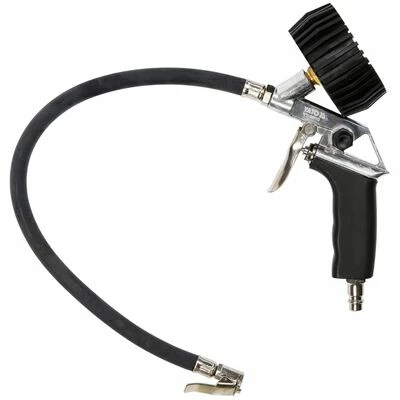 Avec un tuyau de 44 cm de long, il est facile de contrôler le flux d’air. Vous pouvez le ranger n’importe où dans le garage ou l’atelier lorsqu’il n’est pas utilisé car il ne prend pas trop de place grâce à son facteur de forme compact. Le pistolet est équipé d’un manomètre protégé par un corps en caoutchouc, qui vous permet de vérifier la pression d’air du produit à gonfler.